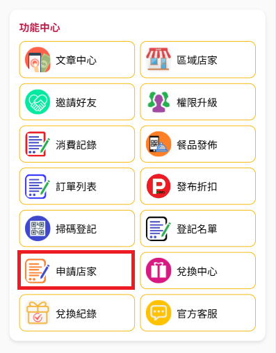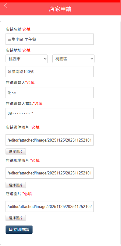 點擊「申請店家」按鈕,進入頁面,詳填資料並上傳證明文件。
