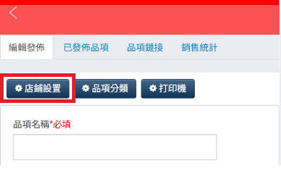 2.餐品上架前,請先做好「店鋪設置」。