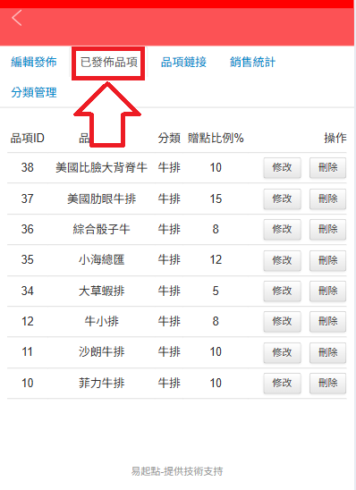 5.查看已發布品項(修改或刪除)